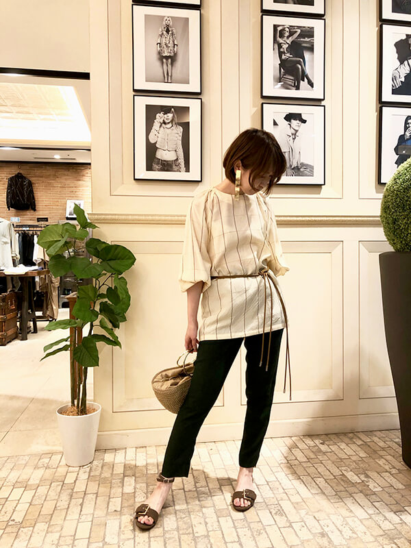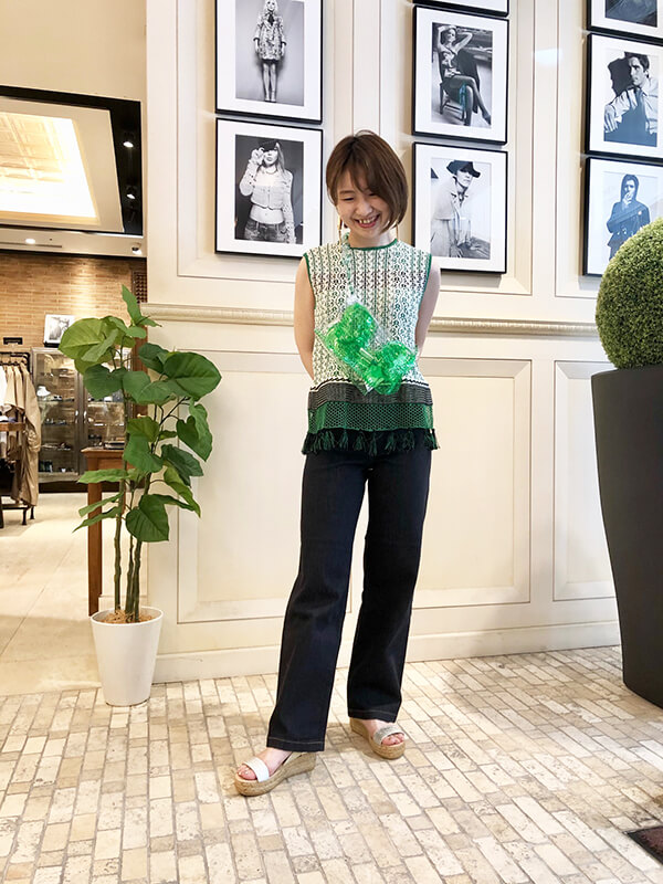 フリンジがポイントになっていて、ウエスト位置が高く見えるので足長効果も抜群です。