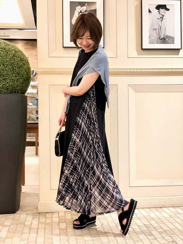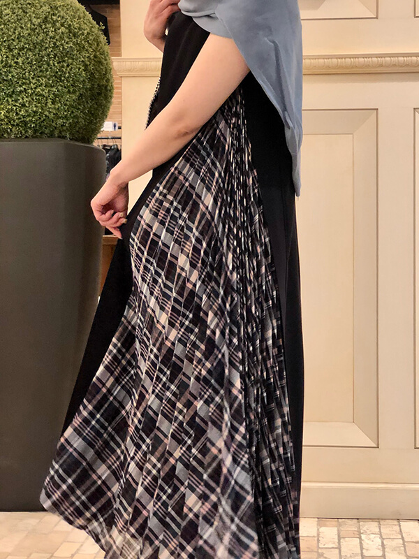 チェック柄の切り替えがオシャレで、歩くたびに揺れるプリーツにテンションが上がります♪