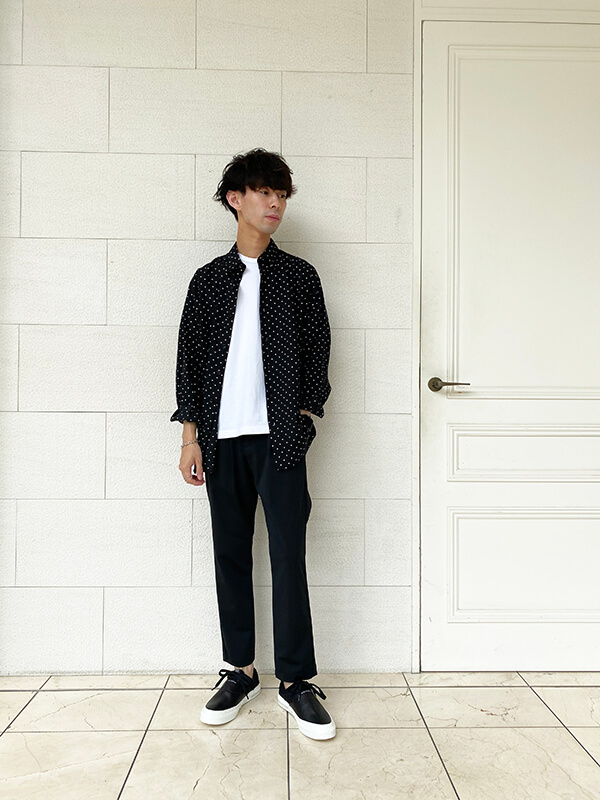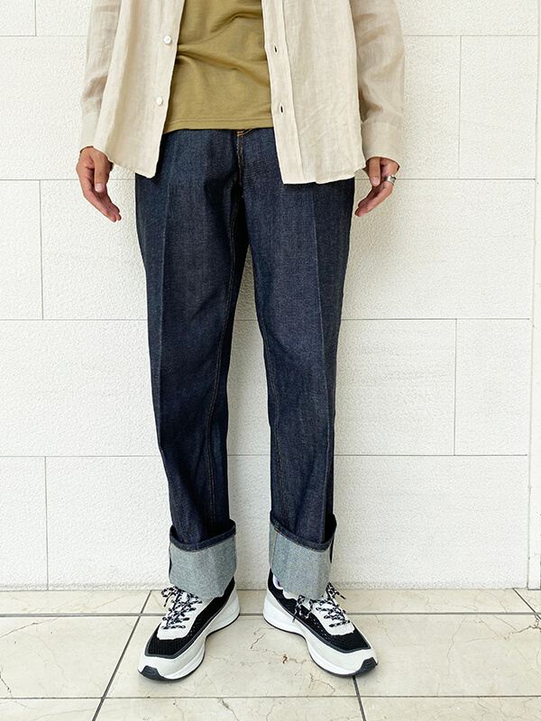 パンツも細すぎず太すぎないシルエットが上半身ともバランスよく着て頂けます。