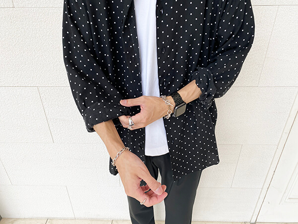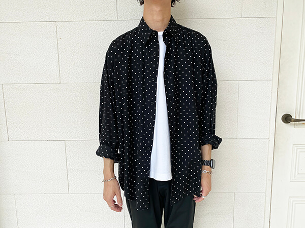 ビッグシルエットを着る際は着られてしまっている感が出やすい体型ですので、素材に気を付けたり、手首をみせるなどして「すっきり感」を心がけましょう。
