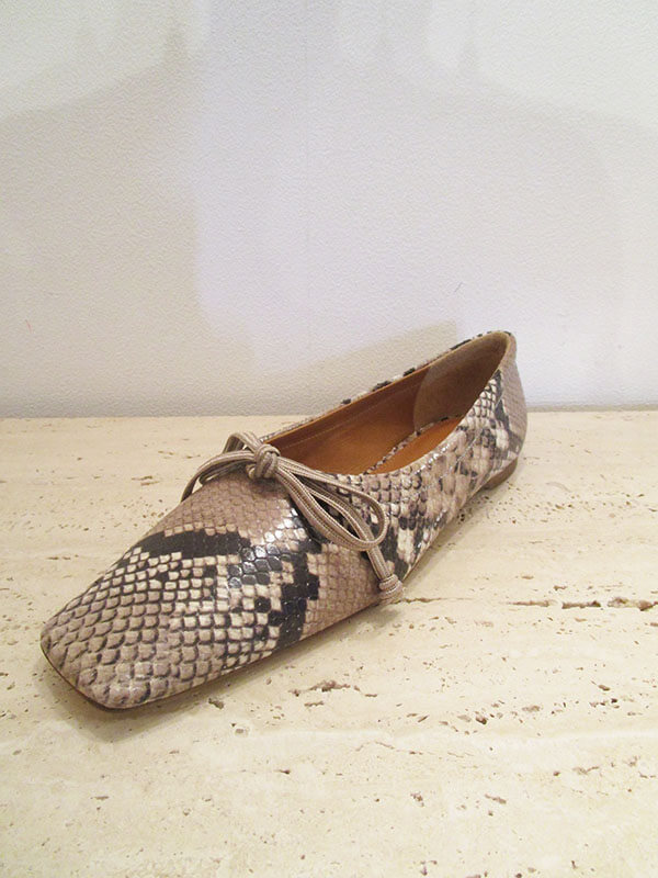 今シーズンはモードなフォルムのスクエアトゥや、アニマル柄プリントでアクセントを加えたシューズに惹かれたコレクション。