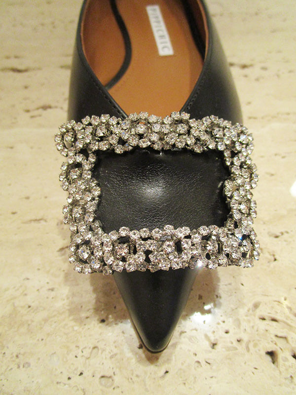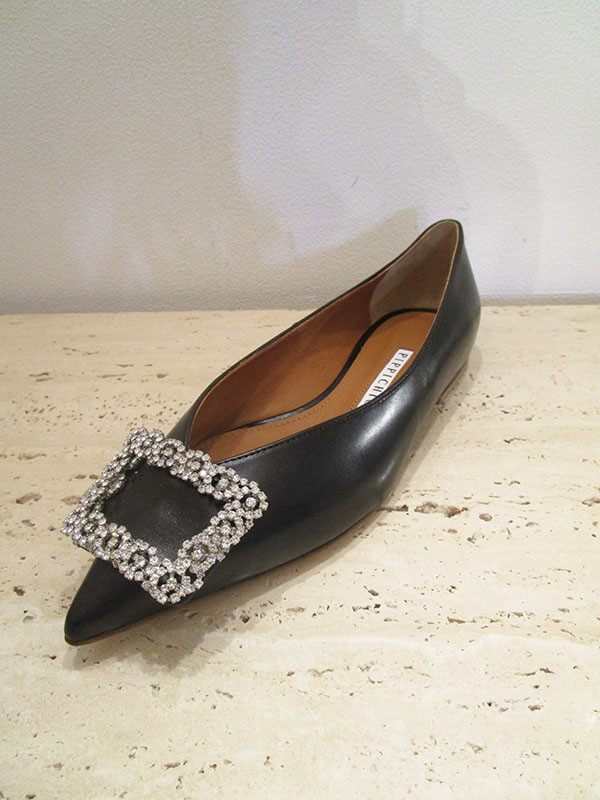 きらめくビジュー使いにフラットの抜け感が加わり、オンオフ様々なシーンで活躍します。