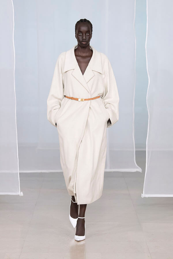 アイスランドの風景にインスパイアされたオリジナルのウールシルクのロングコート。