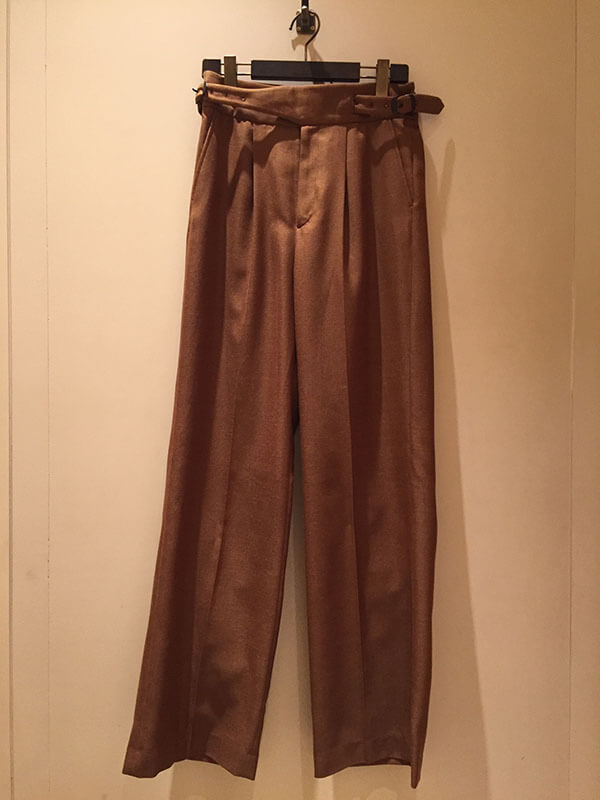 BRITISH ARMY GURKHA PANTSからのインスピレーションでデザインしているパンツはポリエステル×ウールのサージ織素材が季節感を演出。ハイウエストでスタイルアップが叶います。