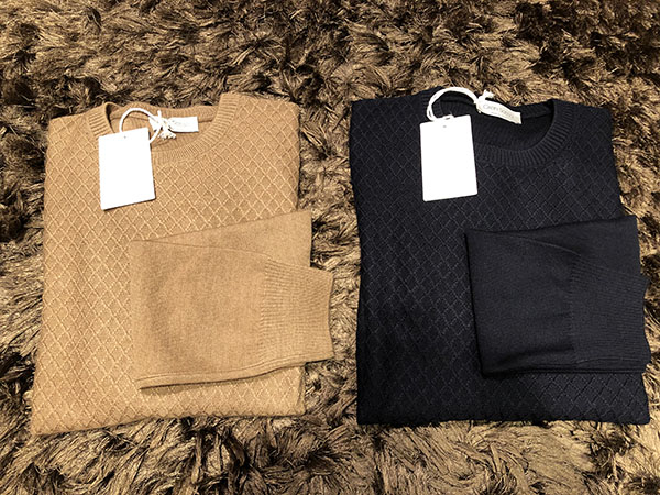 こちらのニットのように編み地を変化させるデザイン力や技術は簡単に真似できるようなものではありません。