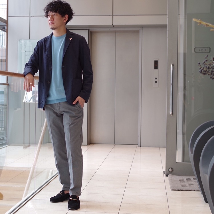 足元も紐で柄を使っておりワンポイント効かせたコーディネートになっております。