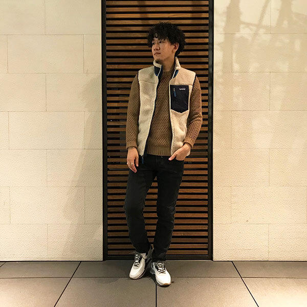 アウトドアなパタゴニアを都会的な着こなしに落とし込みました。