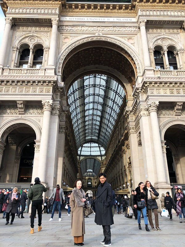 最後にミラノといえば、定番のガレリア前でメンズバイヤーとパチリ。