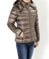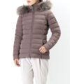 取り外し可能なフードとファーが付いた、こちらもストレッチナイロンのショート丈タイプです。ファーのボリュームがあるので、重心が上になり、すっきりとした印象で着用できます。