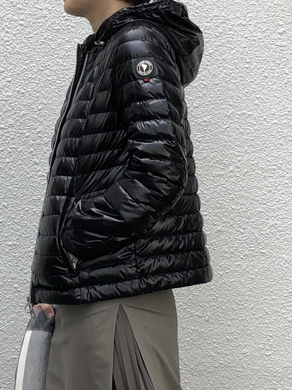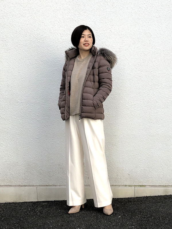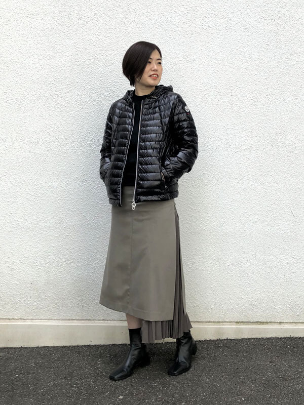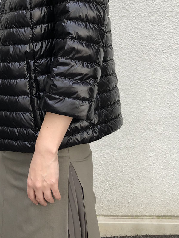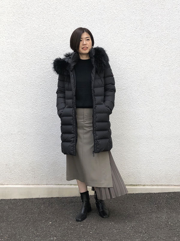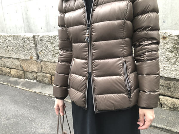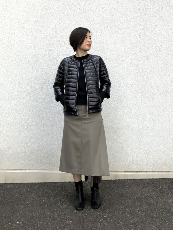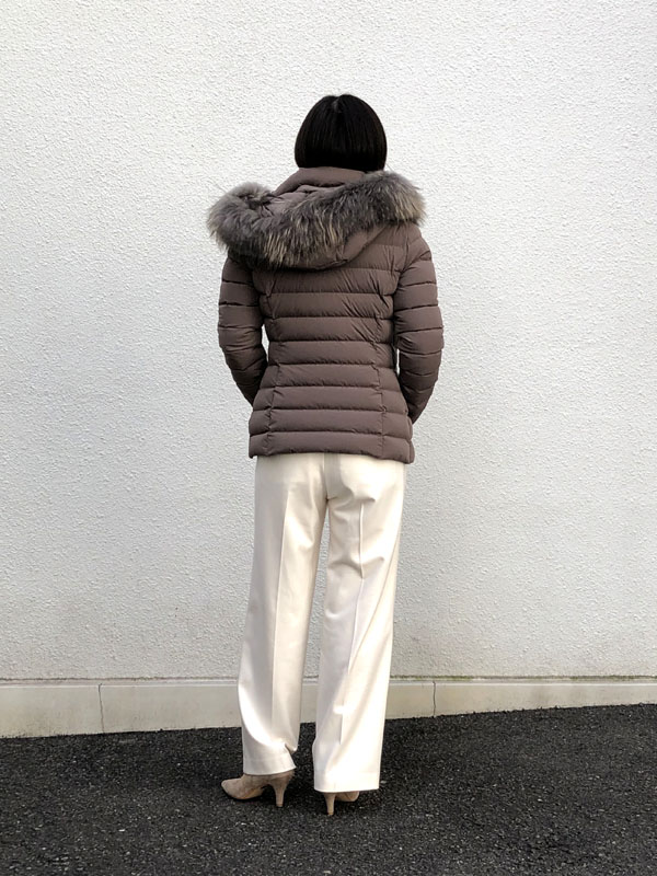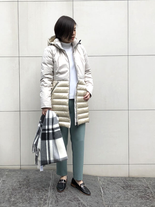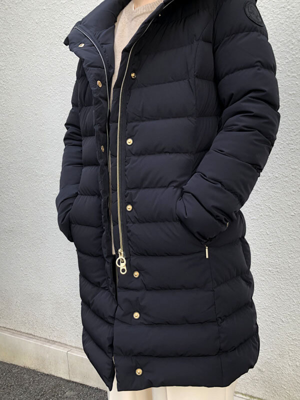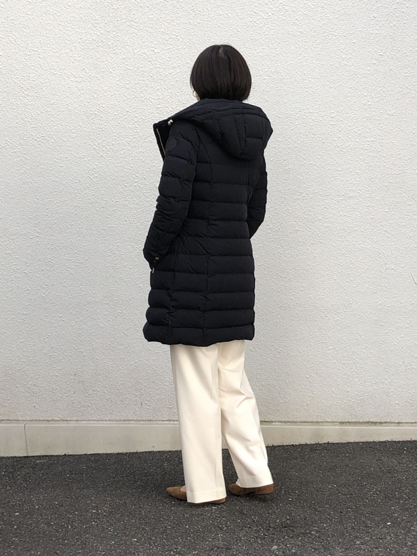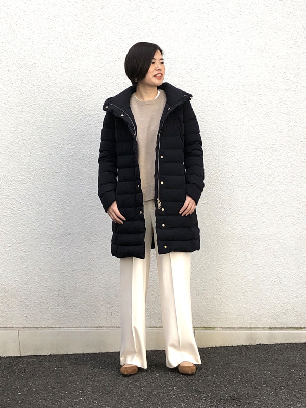 価格的にも買いやすいうえに、上質なダウンを使用しているので、大人気のモデルです。丈の長さも腰くらいで、パンツにもスカートにも合わせやすく、着回ししやすいモデルです。