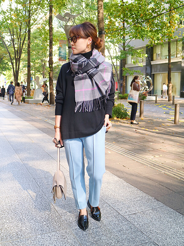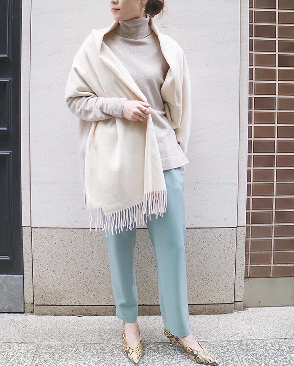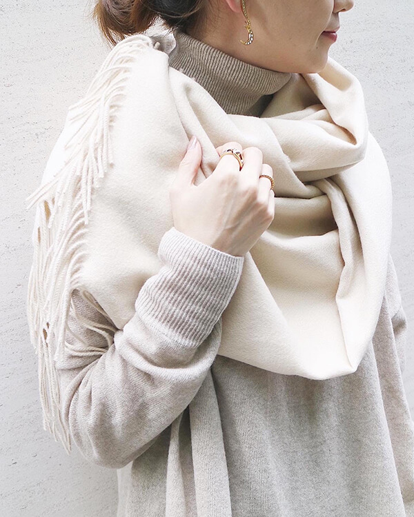 巻き方次第で、首元にボリューム感が出て、コーディネートにメリハリを加えてくれます。