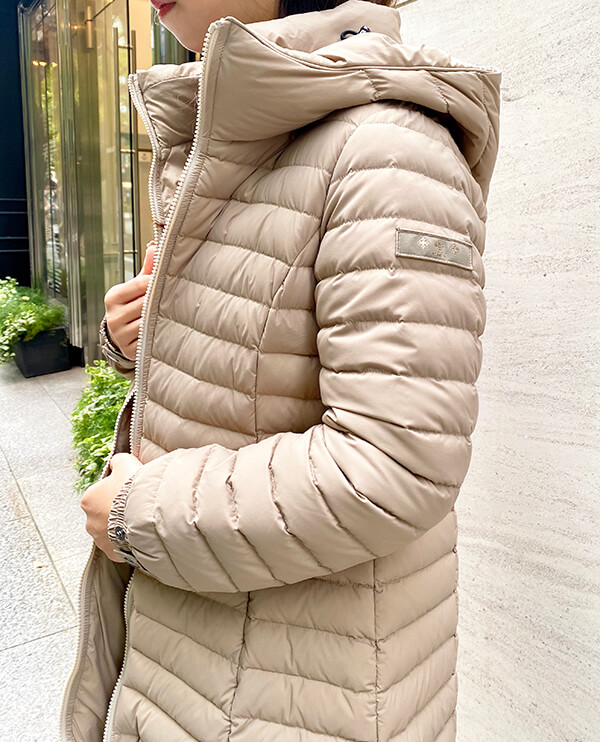ステッチ幅が狭くできているので、ダウン特有のお悩みである、ふくれて見える心配は全くなしです!
