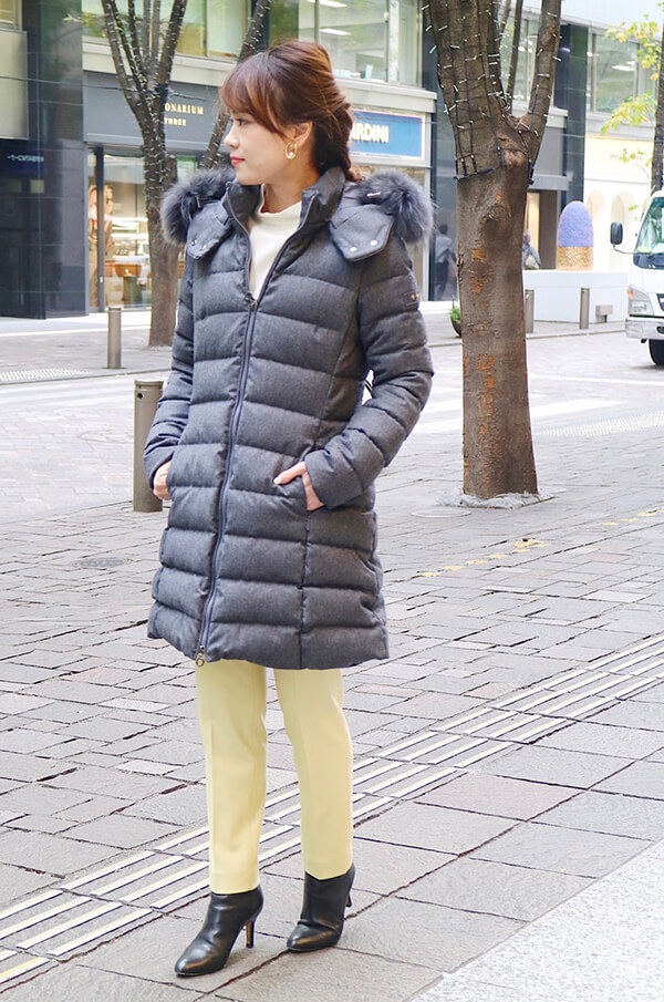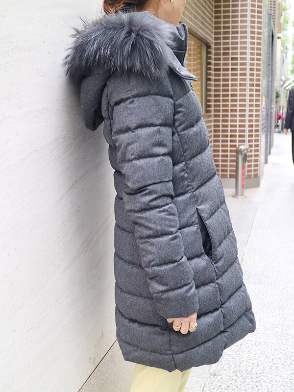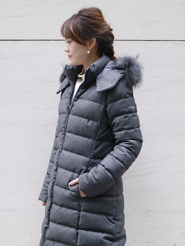 ウール素材の柔らかい雰囲気とポーランドラクーンのファーがエレガントな仕上がりです。