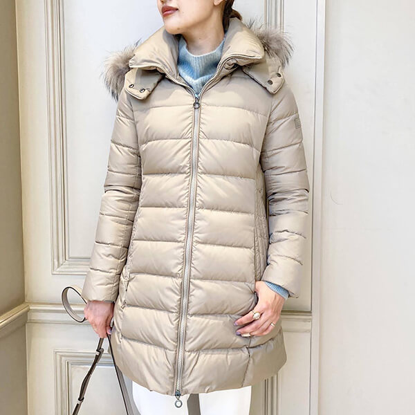 ダークカラーのダウンはもう持っている!という方にもおすすめの顔回りを明るくしてくれるベージュカラー。