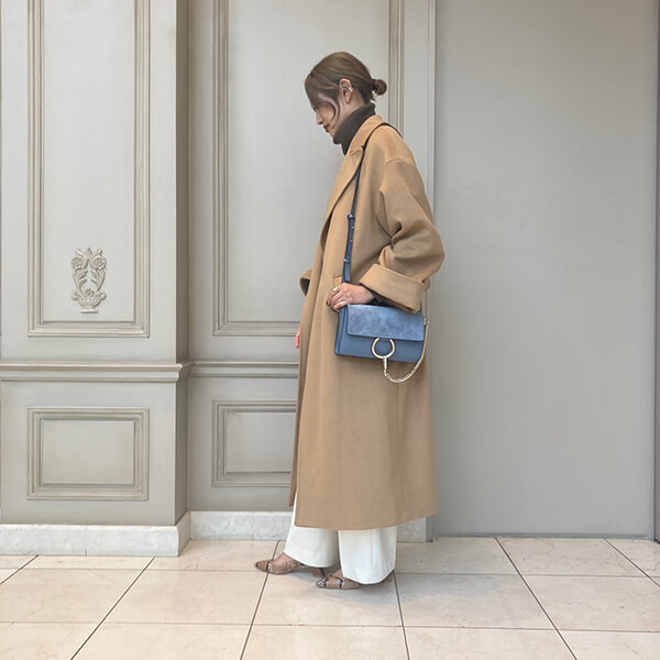 贅沢で重厚な素材感。キャメルベージュが強すぎず個性を出してくれます。