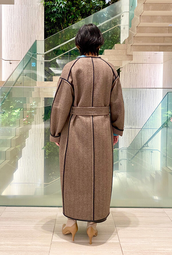 千鳥格子とヘリンボーン柄の2種類のリバーシブル仕様で、ワンパターンコーデになりがちなマキシ丈コートもその日の気分やシーンによって組み合わせを楽しめれる優れもの。