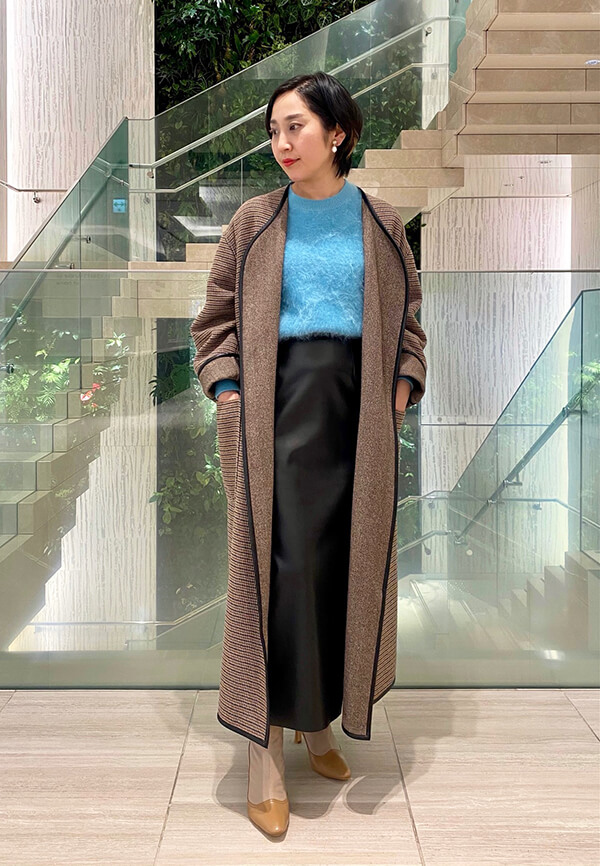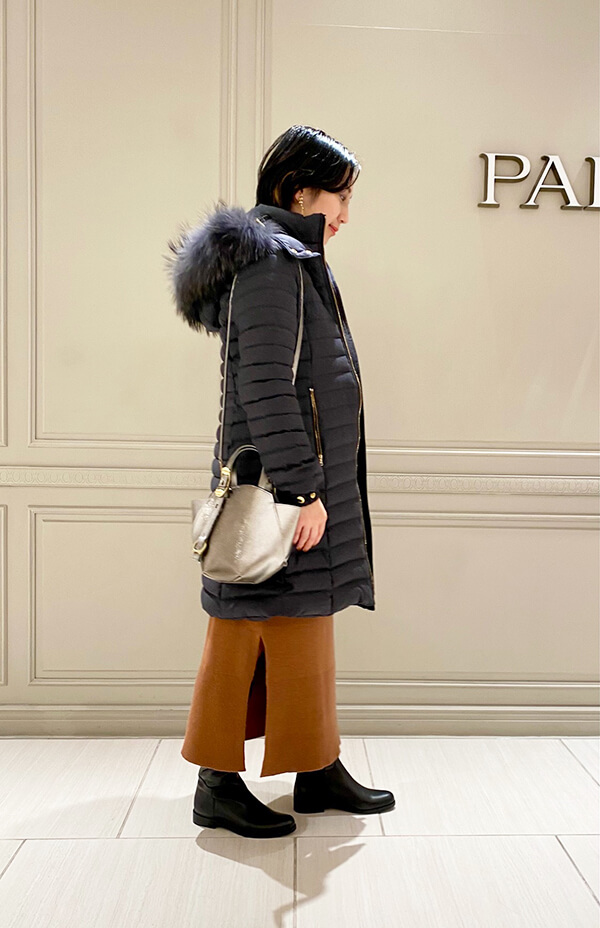 光沢を抑え落ち着いた印象のウール地ダウンコートはシックな大人の雰囲気で、ドレッシーなスタイルからきれいめカジュアルにも合わせやすく着こなしもスマートに決まります。
