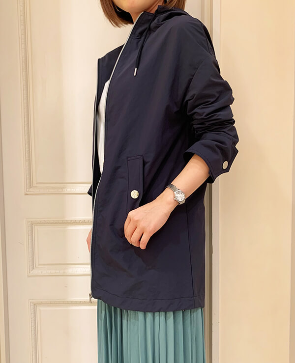 スポーティーさとエレガントさを兼ね備えたフーデッドコート!