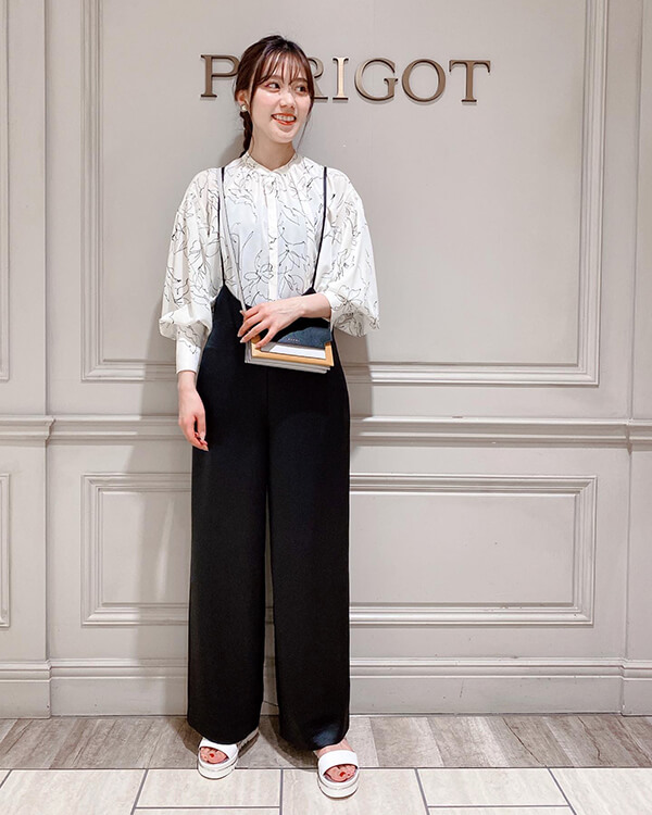 ですが、このサロペットは艶感と紐の部分が細くなっているので、子供っぽくなりすぎず、上品に女性らしく着用して頂けます!