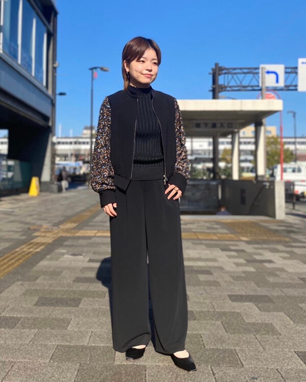 私はブラックで纏めたモードなスタイリングを組んでみました。