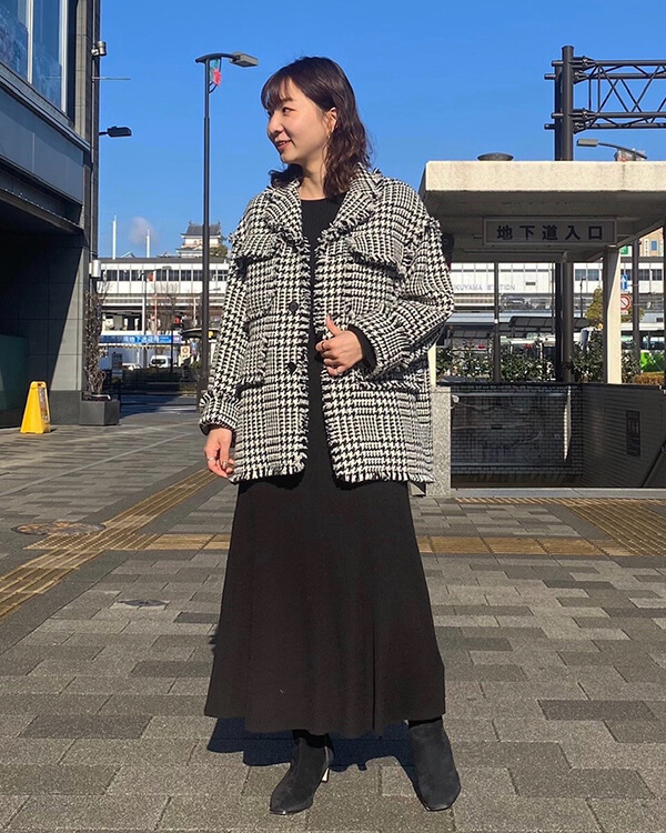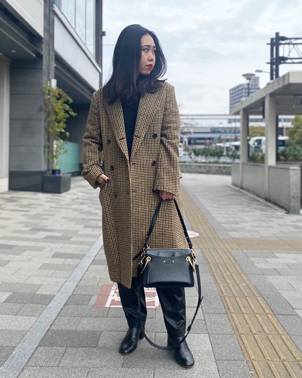 私は大胆なグレンチェック柄が目を惹くコートを!
