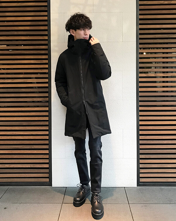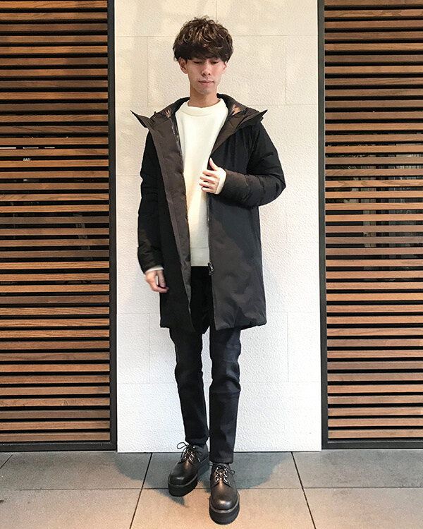 こちらのダウンコートはダウン特有のステッチを内側に施すことで、スッキリと細身なシルエットを生んでいます。