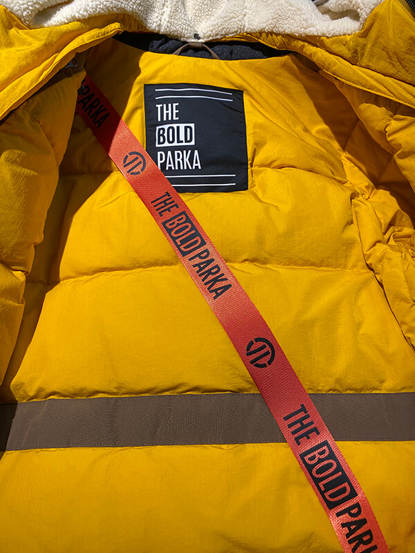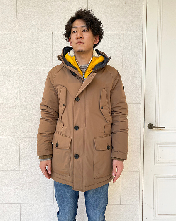 内側の裏地はイエローで遊び心を効かせ、タウンユースにぴったりなダウンとなっております。