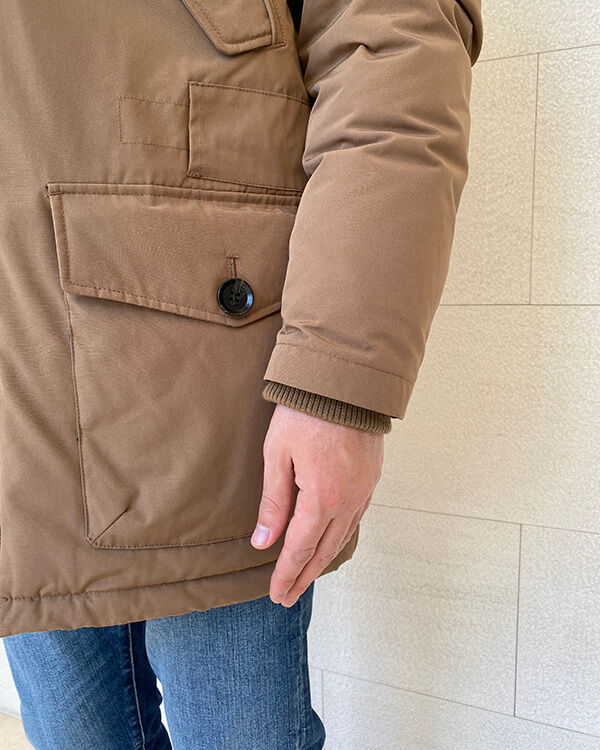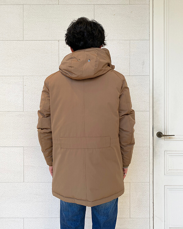 ポリエステル×ナイロンのピーチスキン生地はマットな質感に仕上げており、スポーティな印象になりすぎずに、大人の男性にも取り入れやすい一着に仕上がっています。