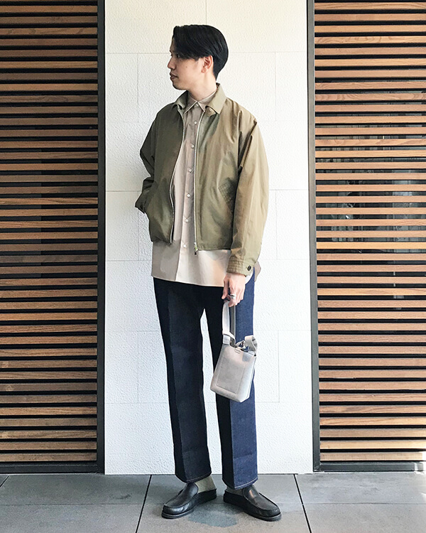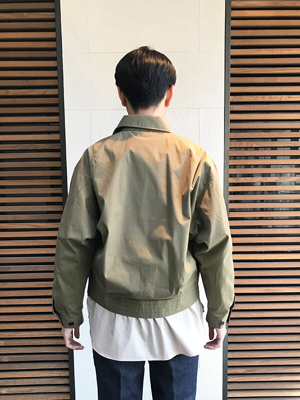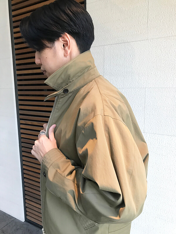 スイングトップの形なのでカジュアルに仕上がりつつも、遊びが効いたディテール、シルエットが施されているので都会的な印象に仕上がります。