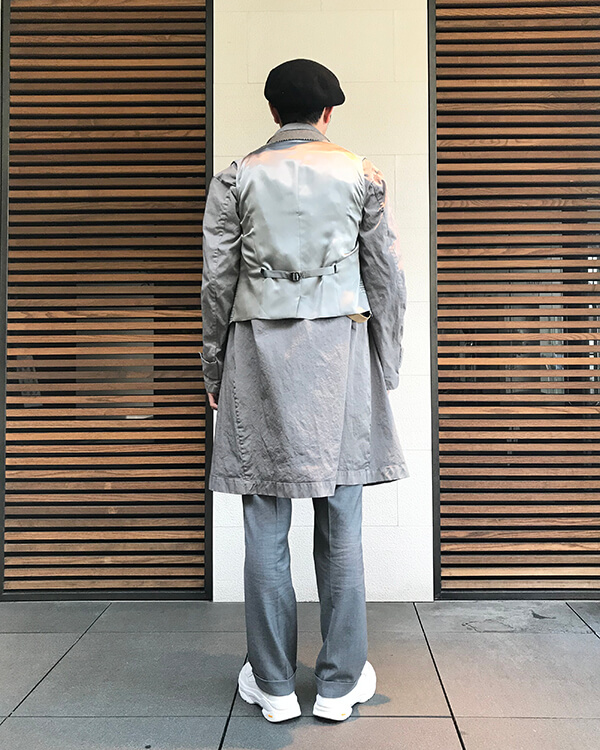 お次はベスト付きコートを使ったスタイリングをご紹介。