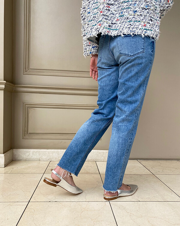 肉感のあるストレートさんにはしっかりした硬め生地のデニムがオススメですが、こちらはまるで綿100%のような質感なのに、実はストレッチが効いているというのがポイント!