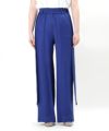 目をひくブルーのパンツはゆったりとしたサイズ感で、着丈も長めなので長身さんにもオススメです。脚長効果も抜群!