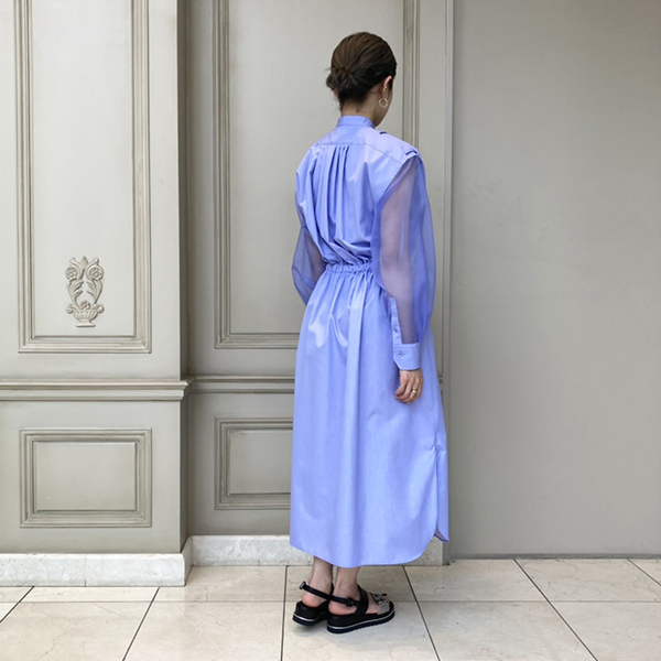 透け感のあるワンピースは首元、袖はギャザー仕様になっており、美しいドレープ感が特徴です!