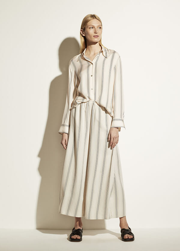 シアー感のあるストライプ素材は上質な素材感が映える逸品。