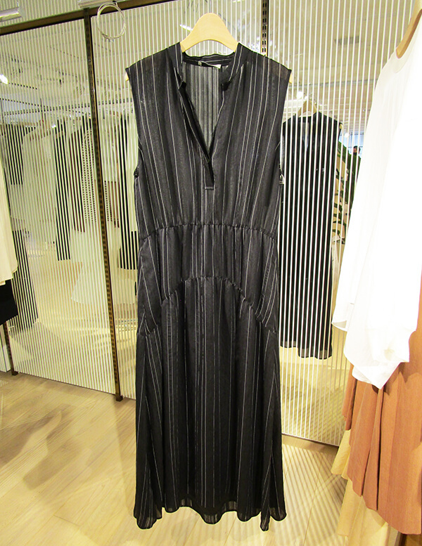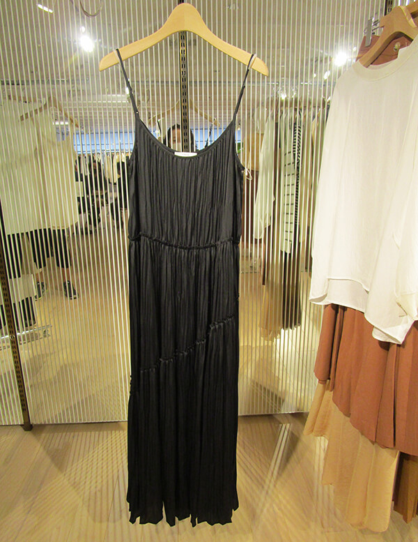 シーズンレスで着て頂けるキャミソールワンピースもプリーツ加工とアシンメトリーな切り替えが効いてます。