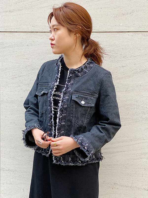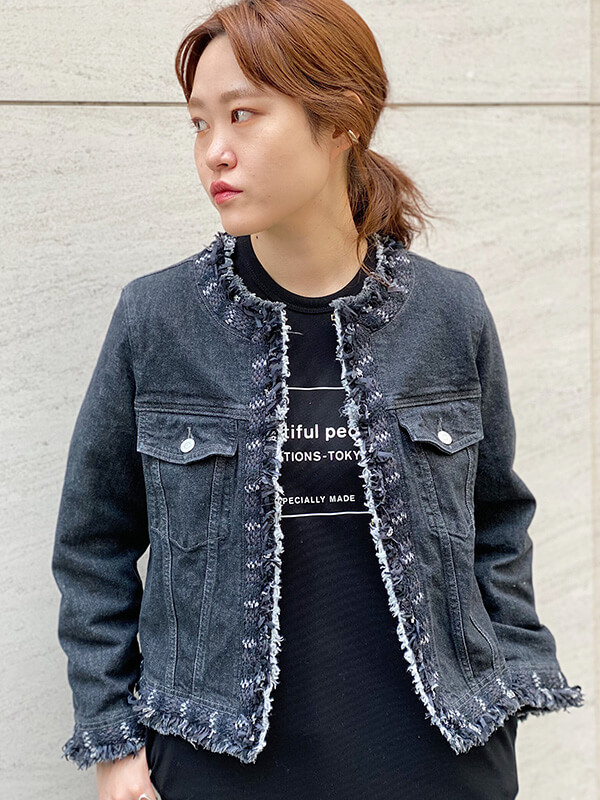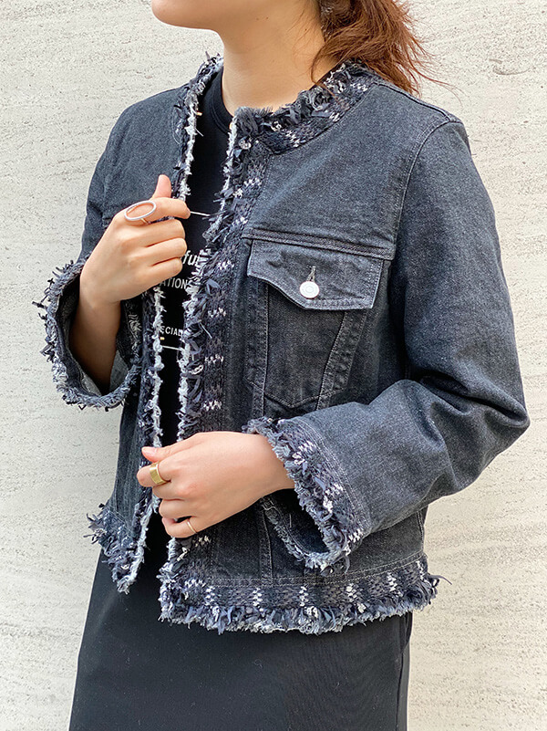 昨年大好評だったCOOHEMコラボのツイードフリンジジャケットが、今年はブラックデニムで新登場!