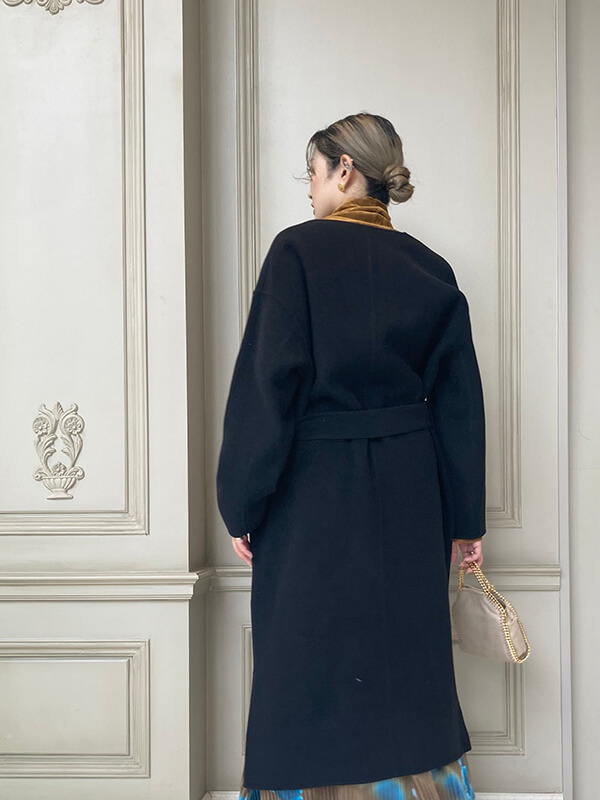 もう1枚のオススメが、こちらの「MANTECOベルテッドロングコート」