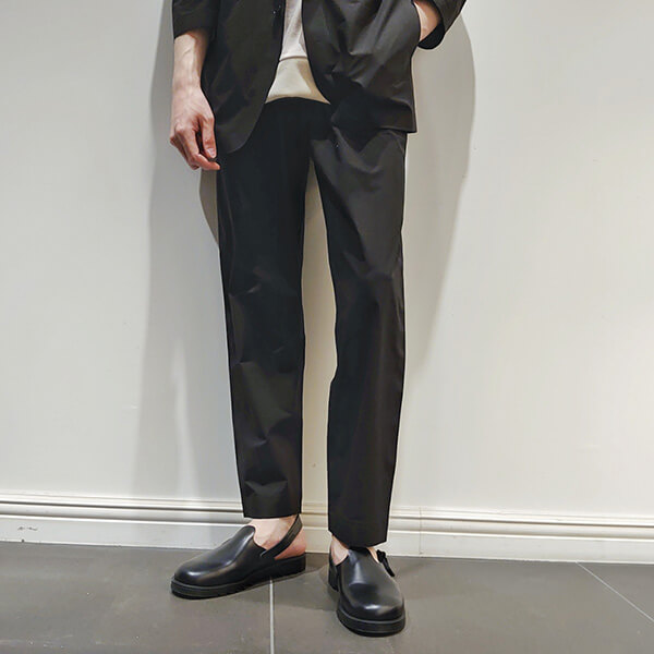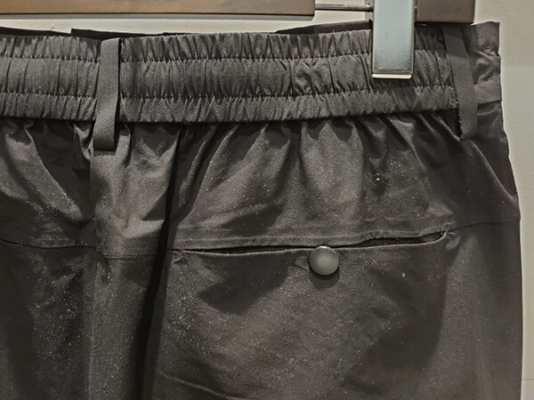 続いてパンツに注目していくと、腰帯部分は後ろ半面だけをウエストゴムにすることで、ノーベルトの際でも履きやすく且つ綺麗な印象を維持してくれます。