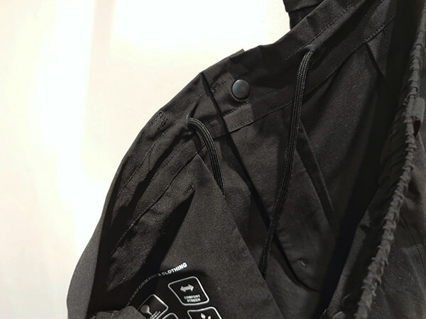 “シームレス”という名の通り、繋ぎ目を圧着することで“シーム(縫い目)”を無くしたミニマルなデザインが特徴的ですが、このセットアップに秘められたポテンシャルは裏地を見て頂くとお分かりいただけます。