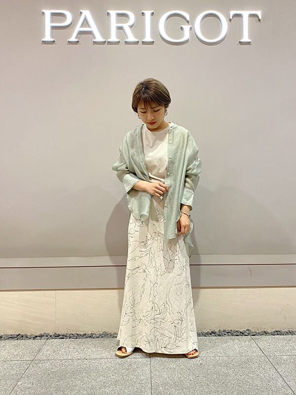 ちなみにサマーさんは、ワントーンコーデも相性抜群!なので、今回はスカートとサンダルの色味もトップスに合わせておさえてみました!