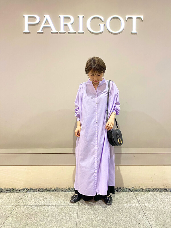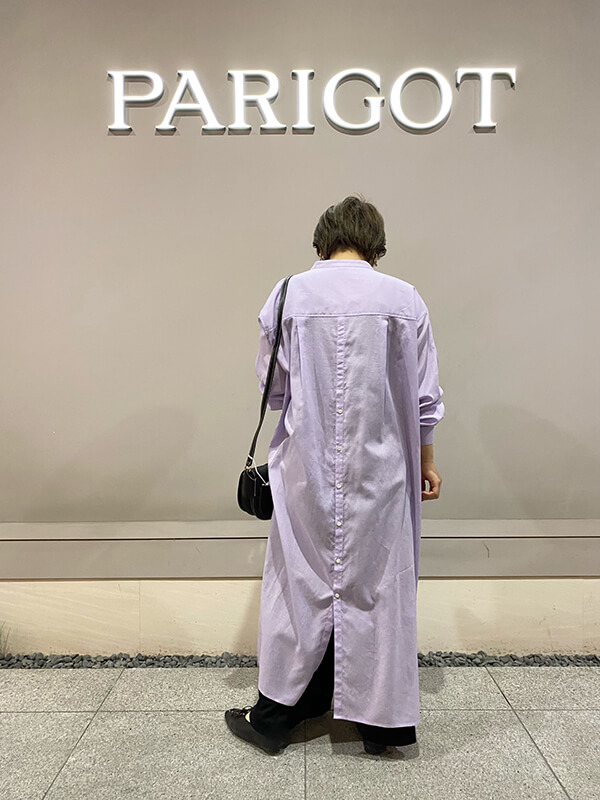 こちらもわたし好みのノーカラーデザインなので、袖や首元の肌見せがポイントですよ!