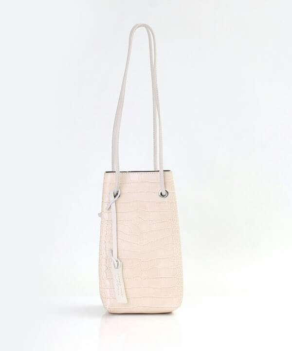 少し小ぶりなショルダーバックはクロコの型押しで洗練された印象に。