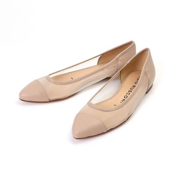 メッシュとレザーのコンビネーションでシアー感を楽しめる一足。