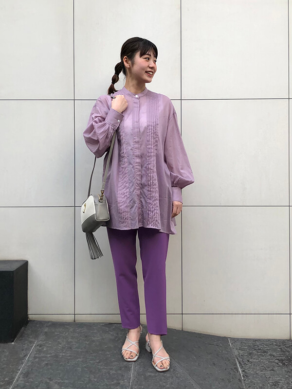 ラベンダーカラーのワントーンコーディネートで、春カラーを思いっきり楽しんだコーディネートです。