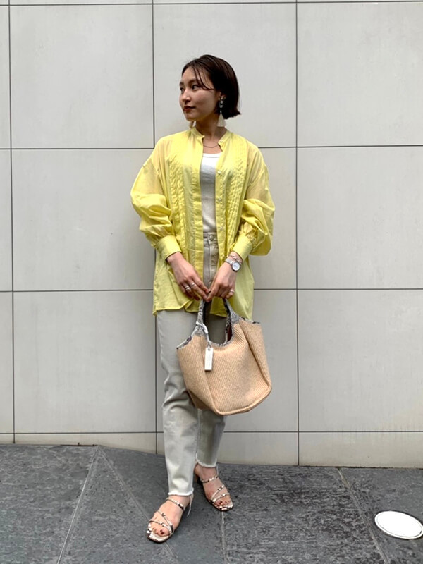 イエローのビタミンカラーを元気にデニムと合わせたコーディネート。