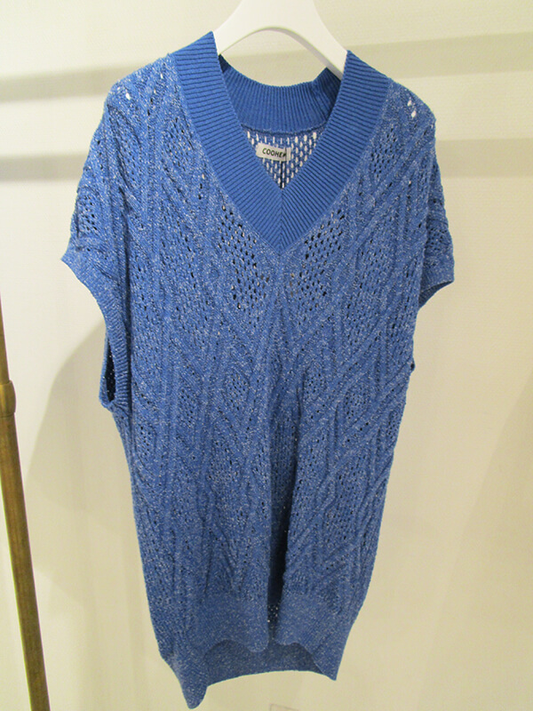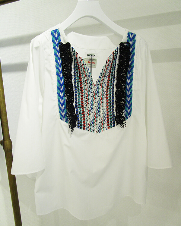 ファンシーヤーンをフロントデザインにふんだんに使用したブラウス。