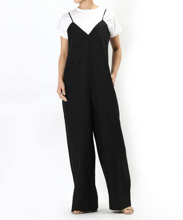 ウエストラインに綺麗なカーブがかかっているオールインワンも夏の万能アイテム。