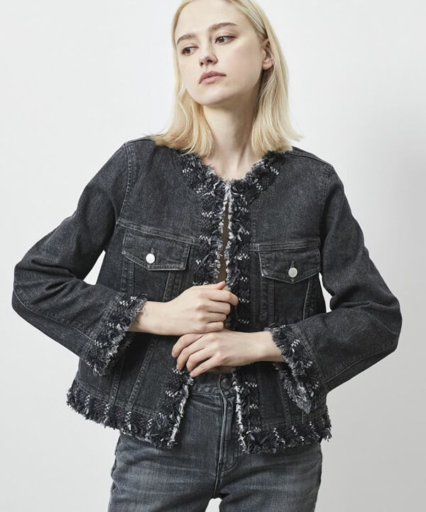 先シーズン大人気だったファンシーヤーンが配されたノーカラージャケットに新色のウォッシュドブラックが登場。