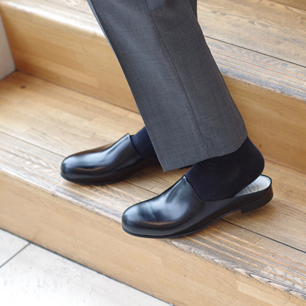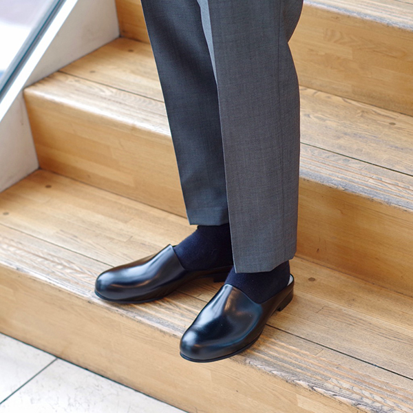 フラットでソリッドな光沢感のあるアッパーの表情、美しい曲線を描くシルエットがサンダルながら上品な雰囲気でスタイリングしていただけます。