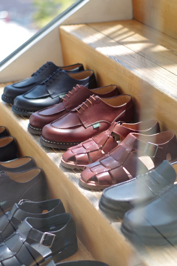 どんな天候でも履ける高い実用性と、キレイめ~カジュアルスタイルまで合わせられる汎用性の高さが魅力のシャンボードを筆頭に、夏の定番であるグルカサンダルも入荷してきております!
